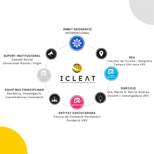 ICLEAT és una iniciativa innovadora que neix de la col·laboració entre la Universitat Rovira i Virgili (URV) i el seu Centre de Formació Permanent (CFP). Ubicat a la Facultat de Turisme i Geografia, ICLEAT ofereix una àmplia gamma de programes formatius dissenyats per donar resposta a les necessitats específiques del sector turístic.